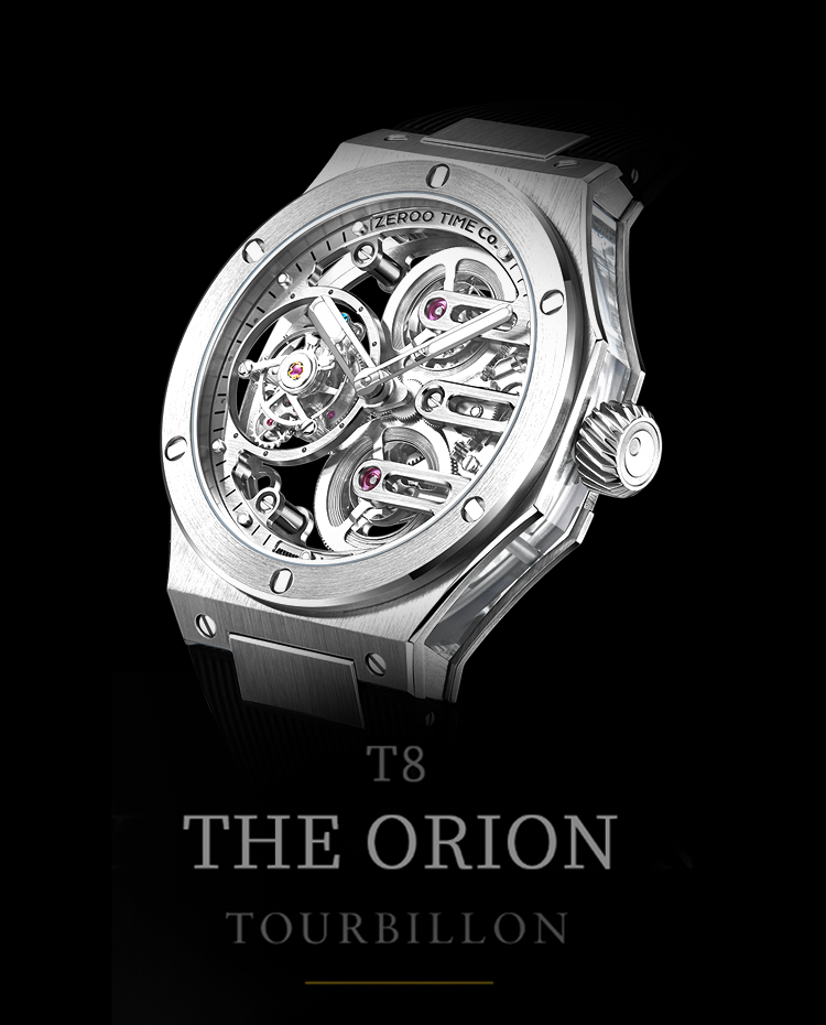 The tourbillon is the pinnacle of mechanical watchmaking. The ZEROO series is equipped with a full-skeleton tourbillon that allows the wearer to enjoy the movement from the side.