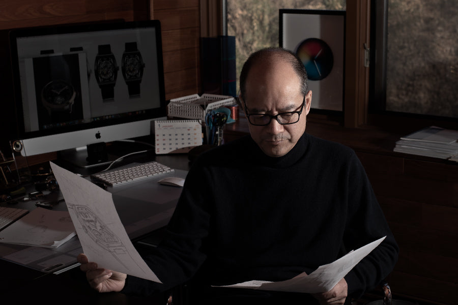 SYUU, on the other hand, has also designed products for major household appliance manufacturers and printers, as well as wristwatches, which is why every ZEROO watch starts with a drafting sketch by him. He then creates his own elaborate designs based on these sketches, and supervises the manufacture of the parts and their assembly in workshops both in Japan and abroad.