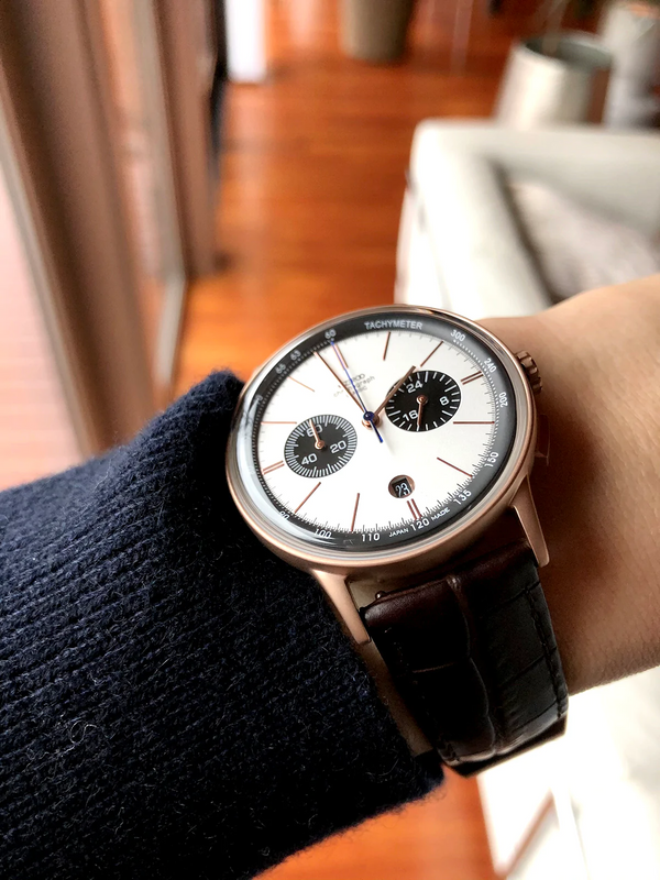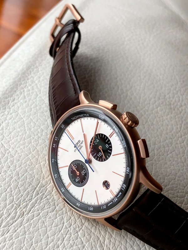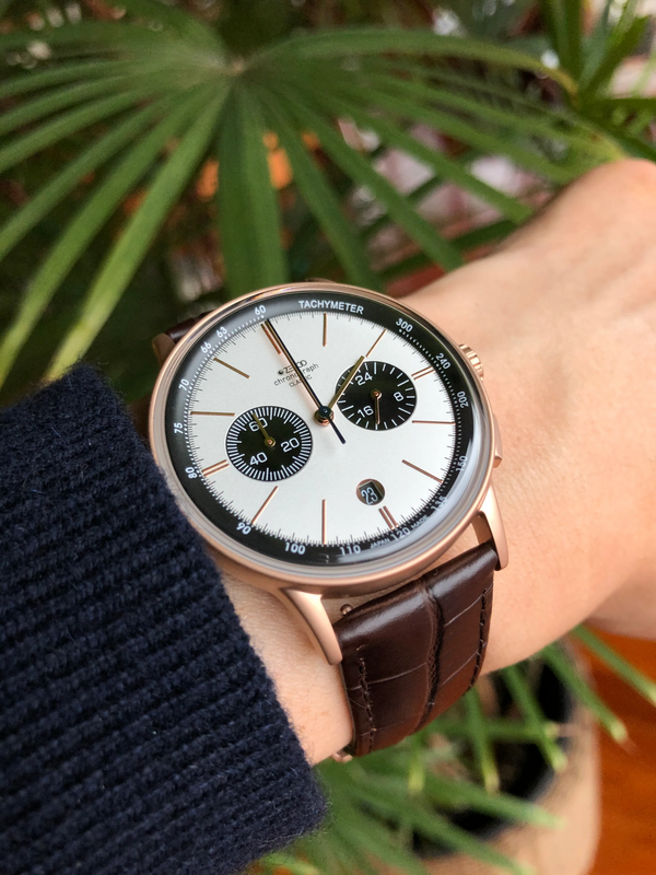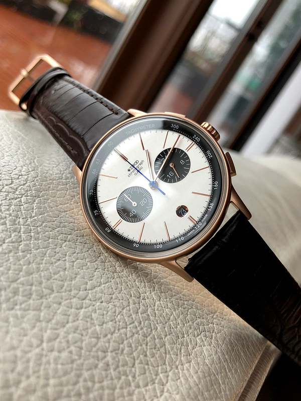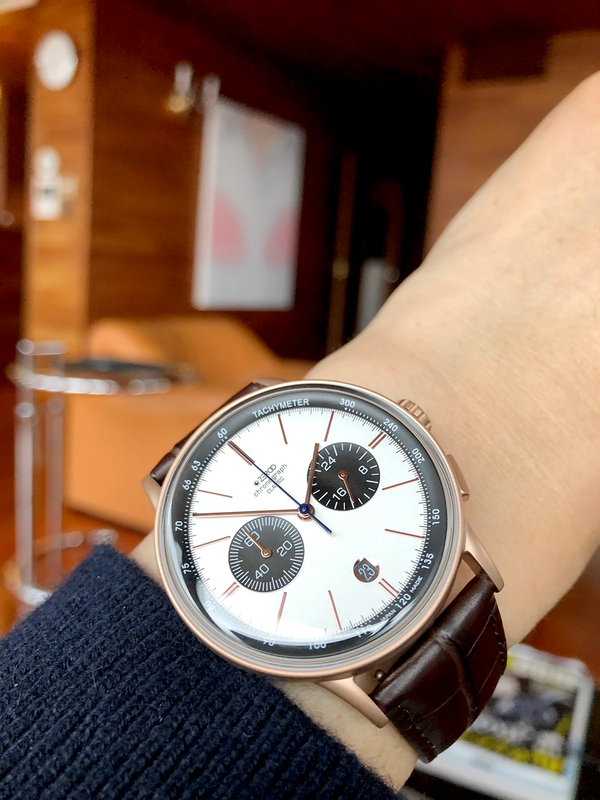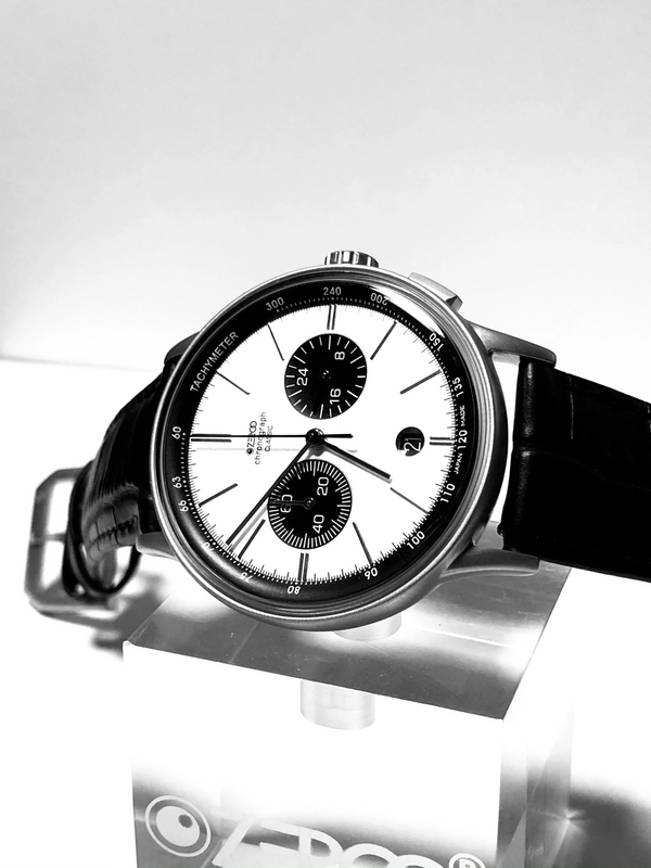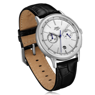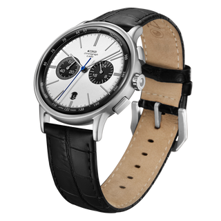 THE THIRD MODEL IN THE CLASSIC SERIES IS A CHRONOGRAPH. THE HOUR, MINUTE AND CHRONO HANDS ARE ALL DESIGNED TO BE THIN AND DELICATE.