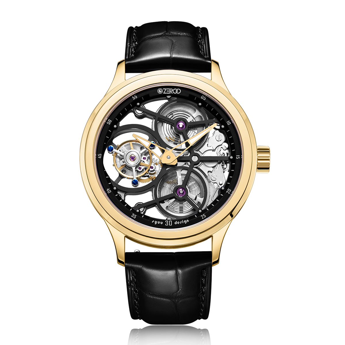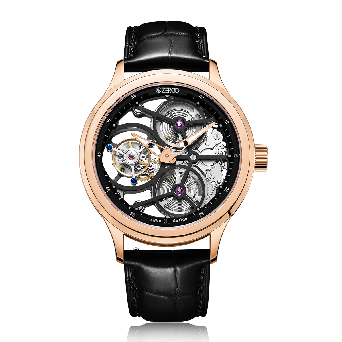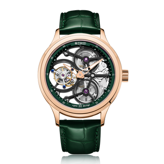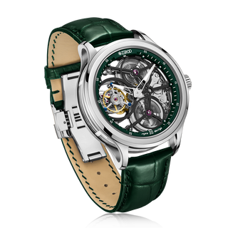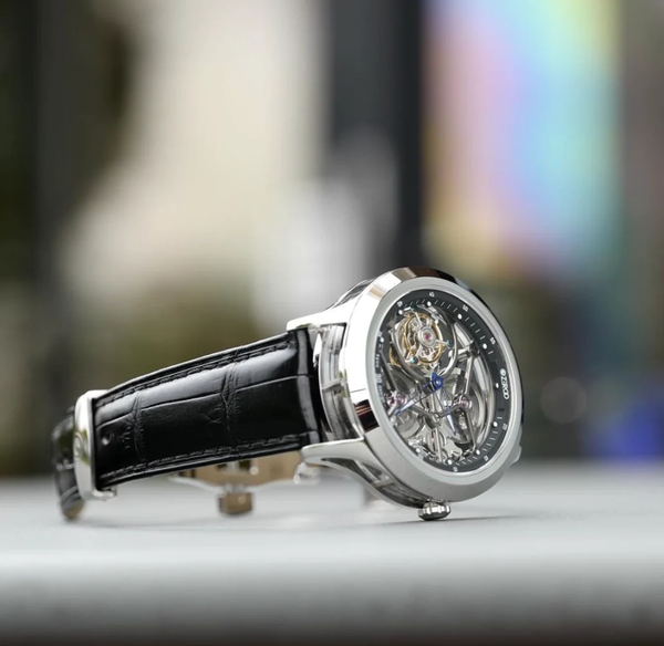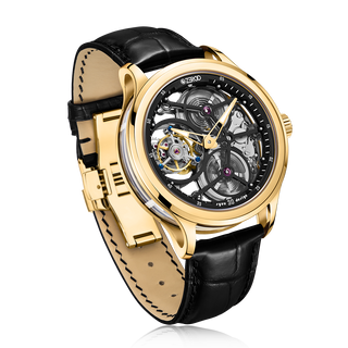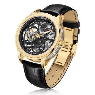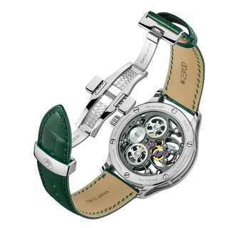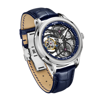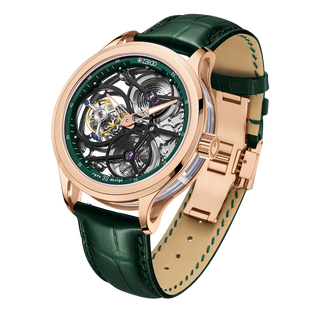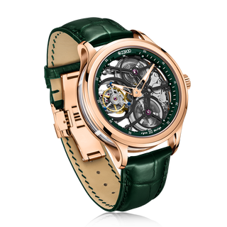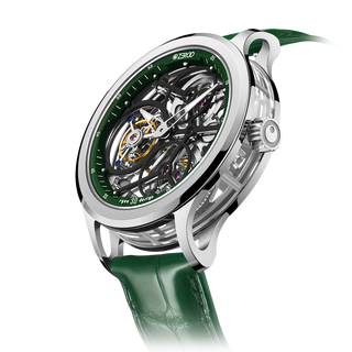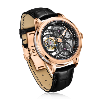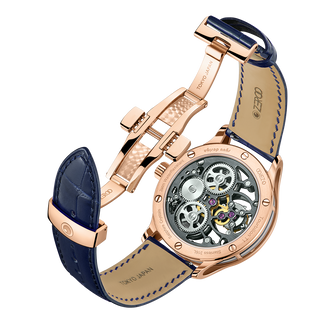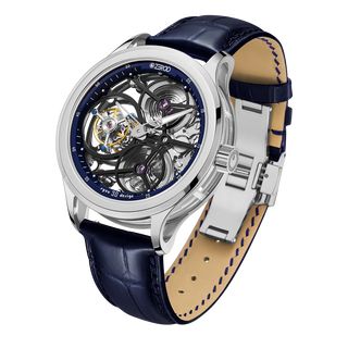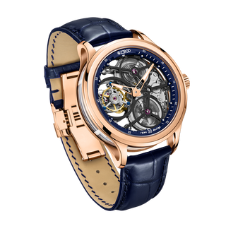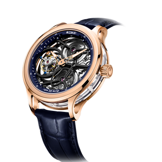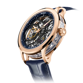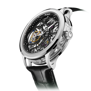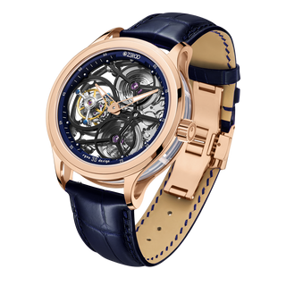 This fully skeletonised tourbillon movement is designed to be transparent, allowing the wearer to admire the precision of the flying tourbillon movement not only from the front and back but also from the sides.