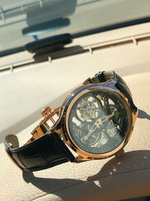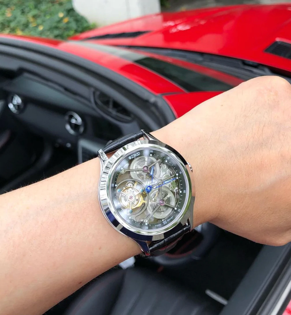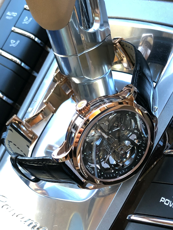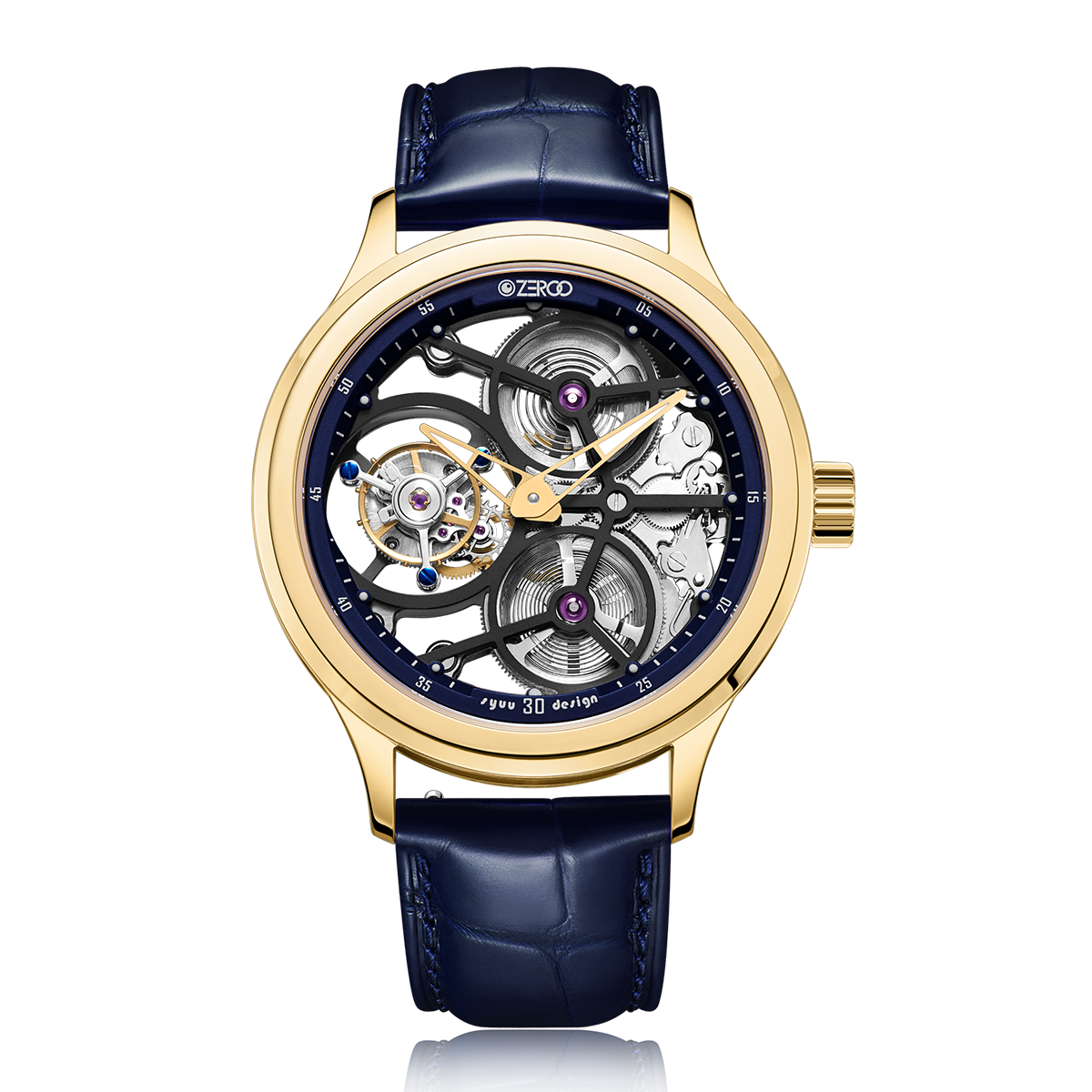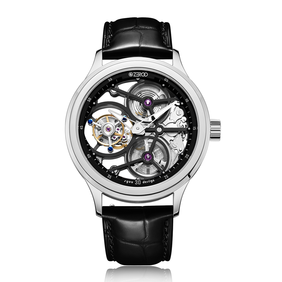 This fully skeletonised tourbillon movement is designed to be transparent, allowing the wearer to admire the precision of the flying tourbillon movement not only from the front and back but also from the sides.