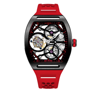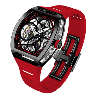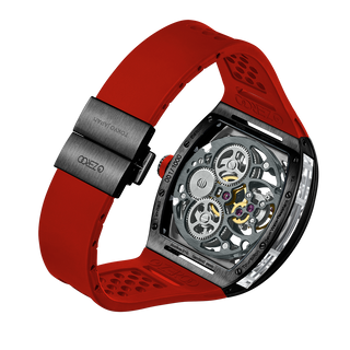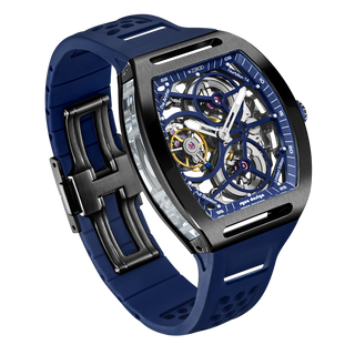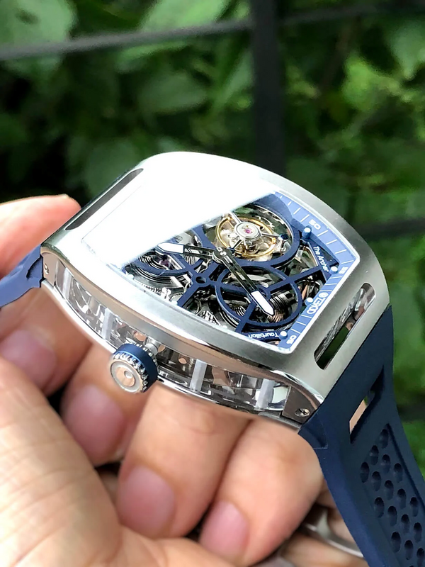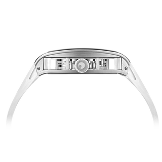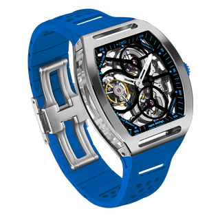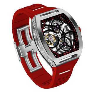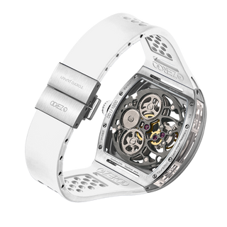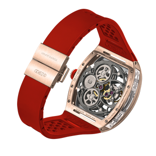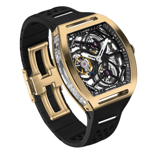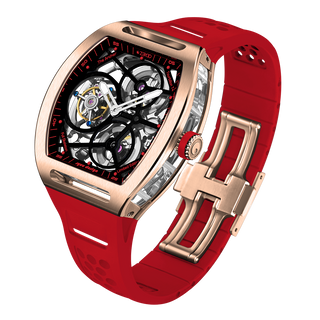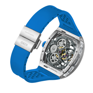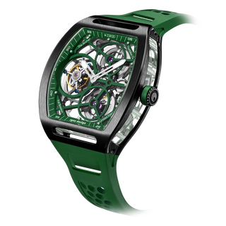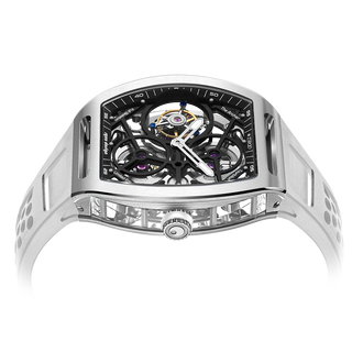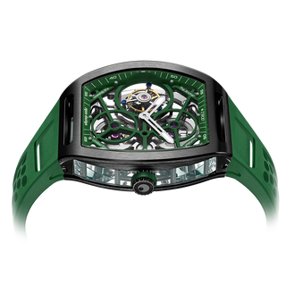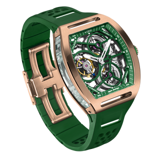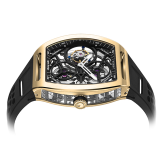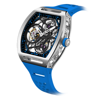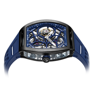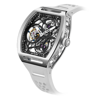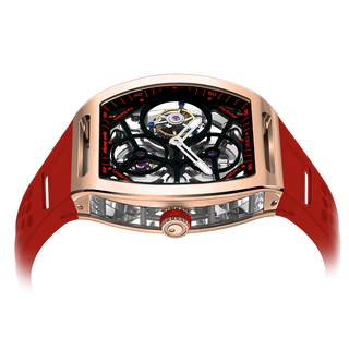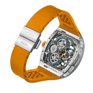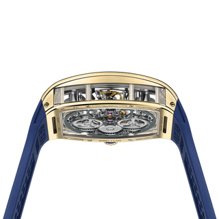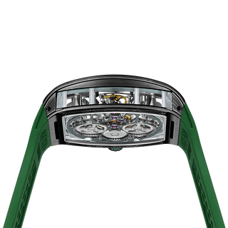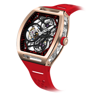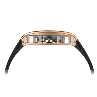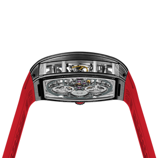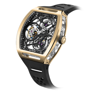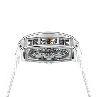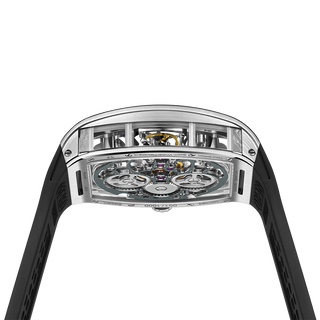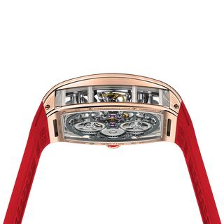 This fully skeletonised tourbillon movement is designed to be transparent, allowing the wearer to admire the precision of the flying tourbillon movement not only from the front and back but also from the sides.