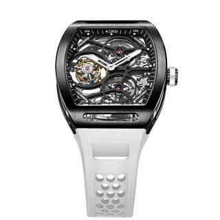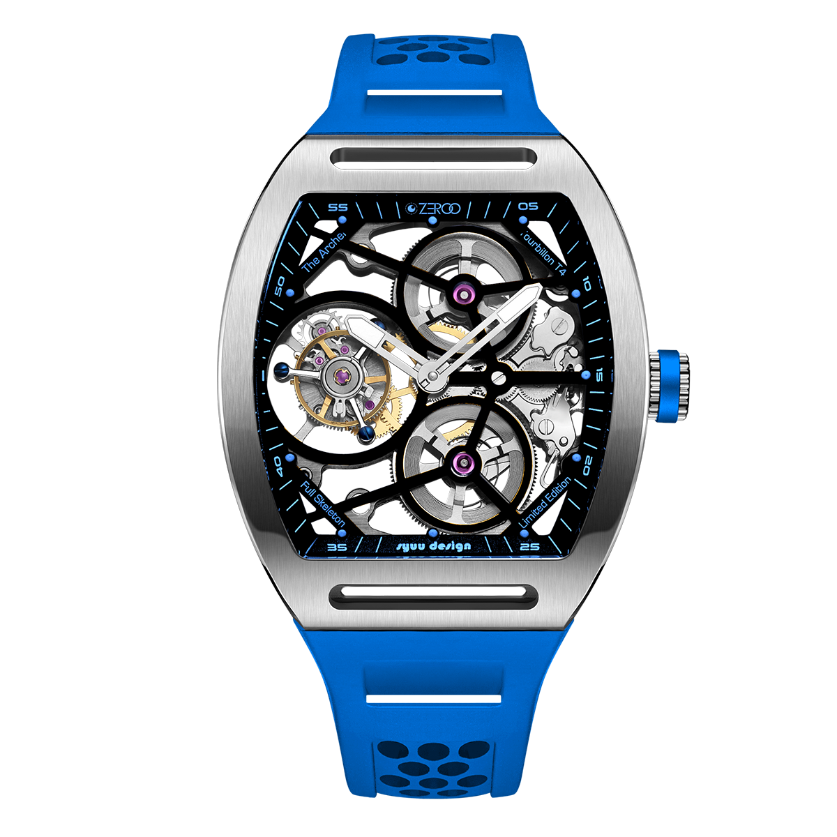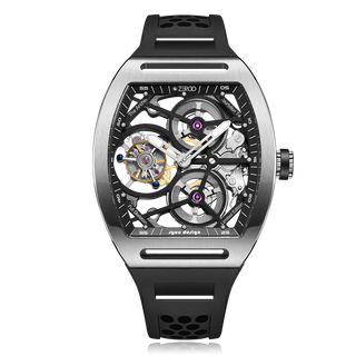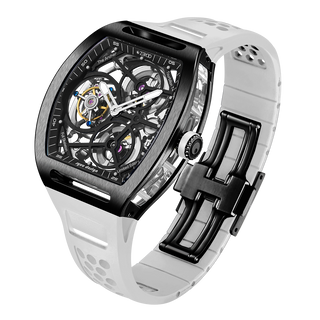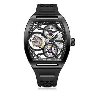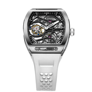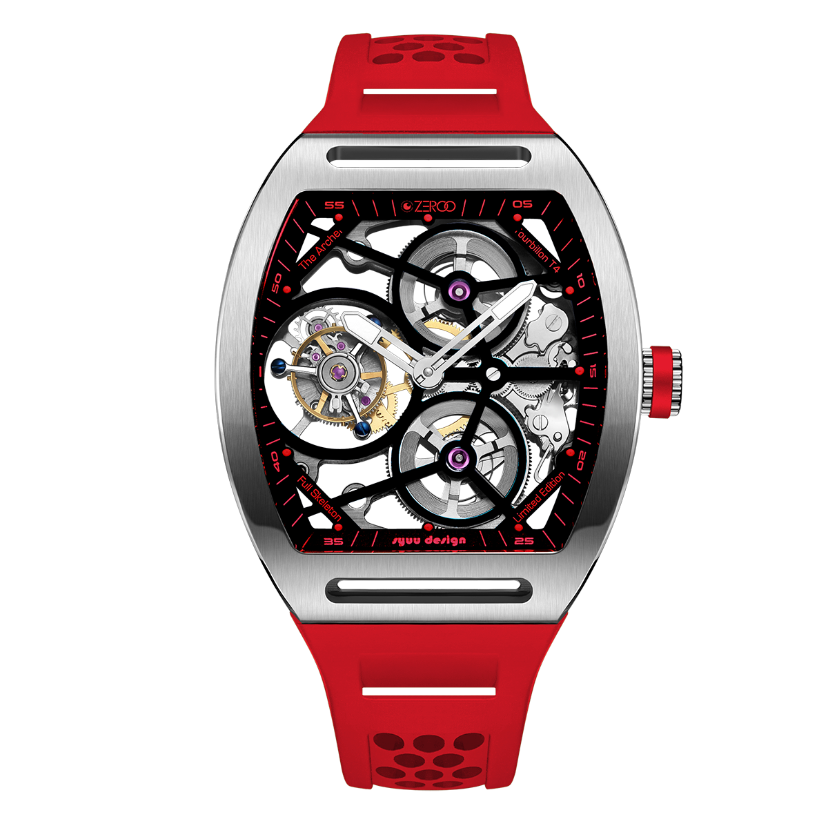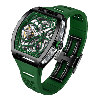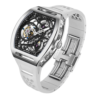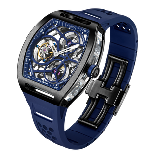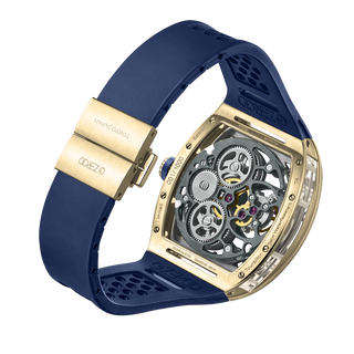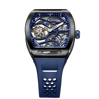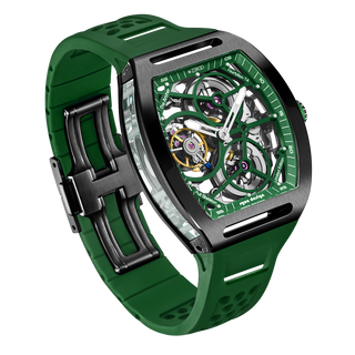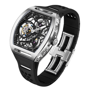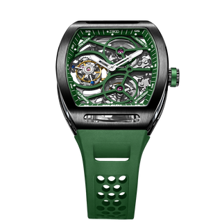 This fully skeletonised tourbillon movement is designed to be transparent, allowing the wearer to admire the precision of the flying tourbillon movement not only from the front and back but also from the sides.