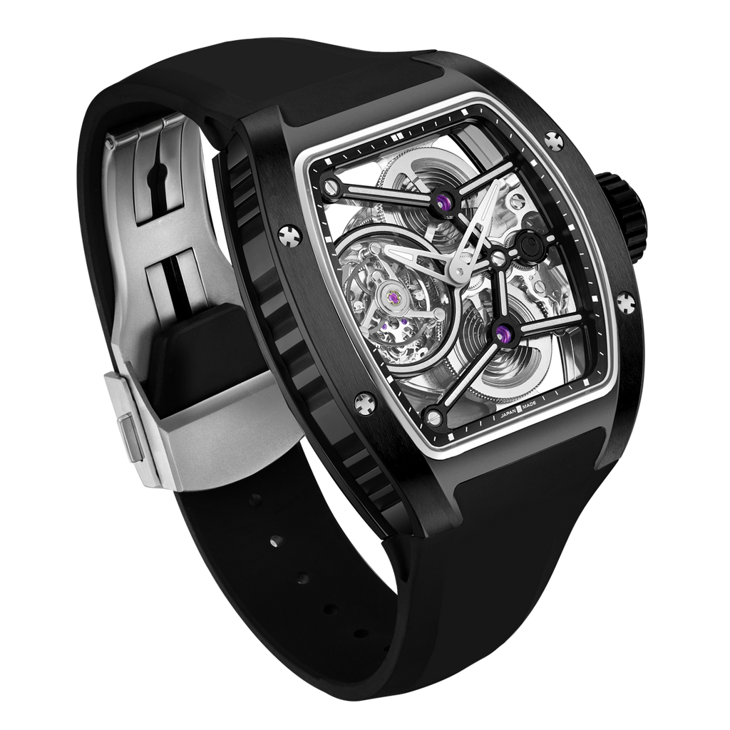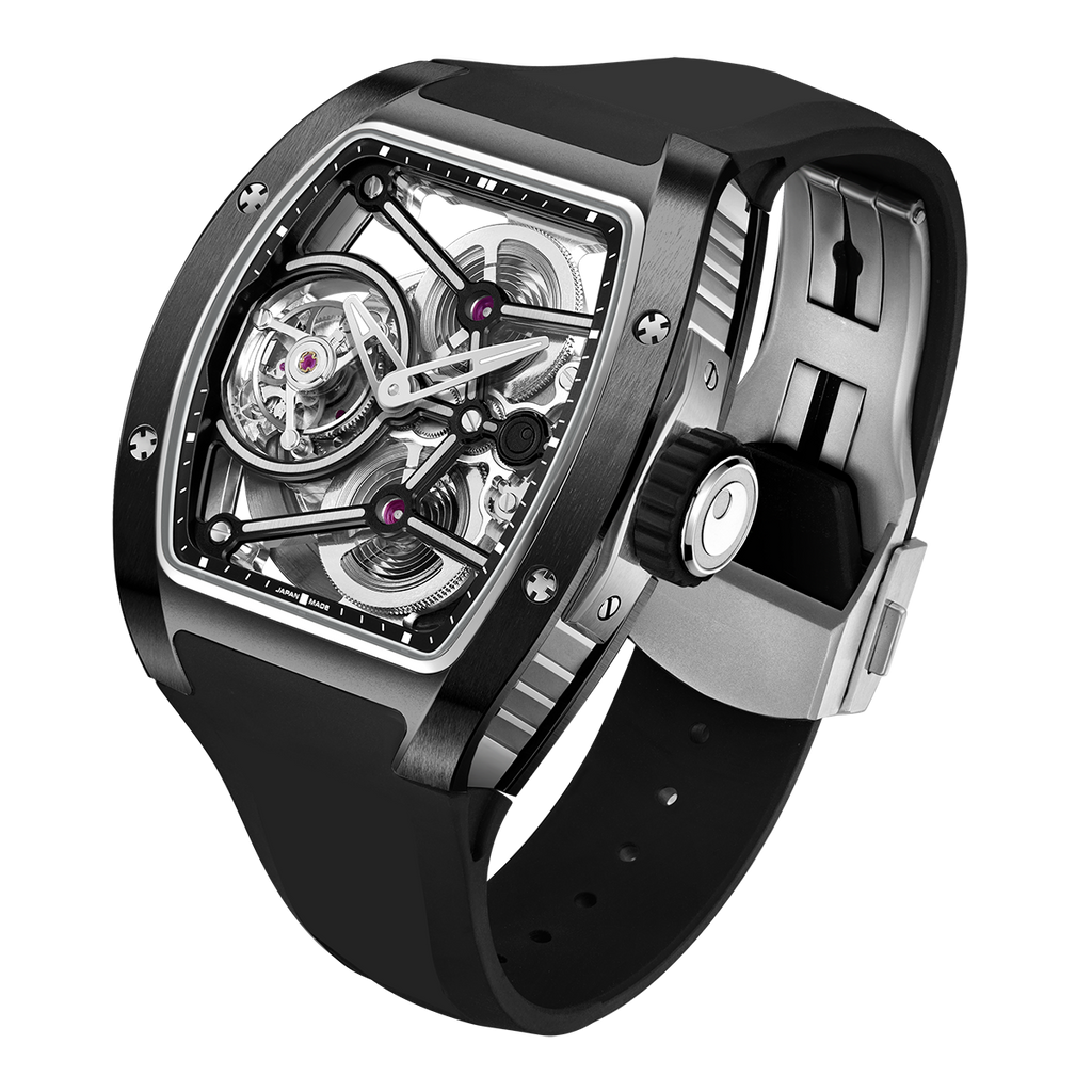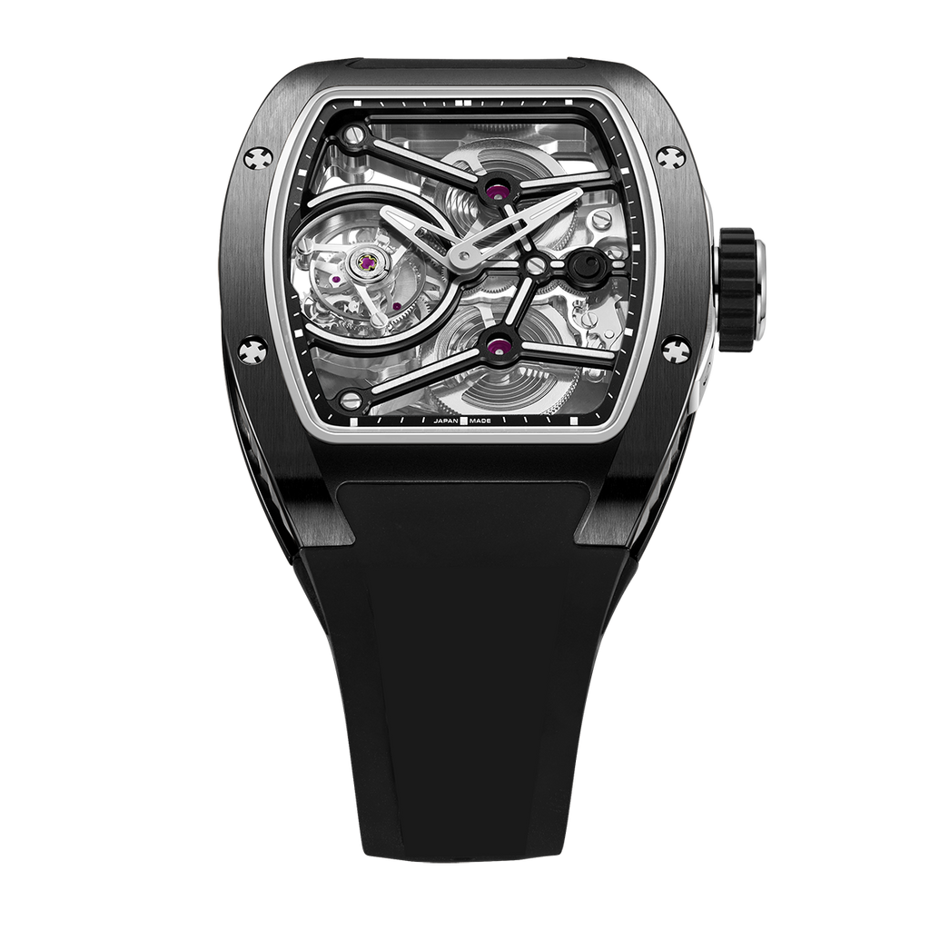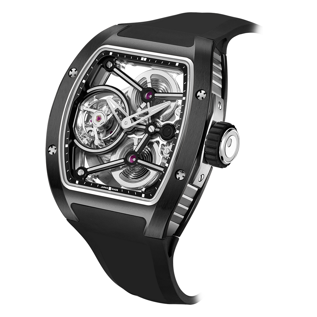 品番:ZT010 ムーブメント:Cal.ZT08 自動巻機械式トゥールビヨン ケースサイズ(W×H):43mm x 51 mm ケース厚さ:14mm ケース素材:316Lステンレススチール ベゼル:ポリッシュ/サテン 風防:サファイアクリスタル 裏蓋:シースルーバック(サファイアクリスタル) 耐水圧:3BAR 重量:136g ベルト素材:フッ素ラバー ベルトカラー:ブラック/ホワイト バックル:Dバックル 夜光:Luminova(針) パワーリザーブ:60時間 保証期間:2年