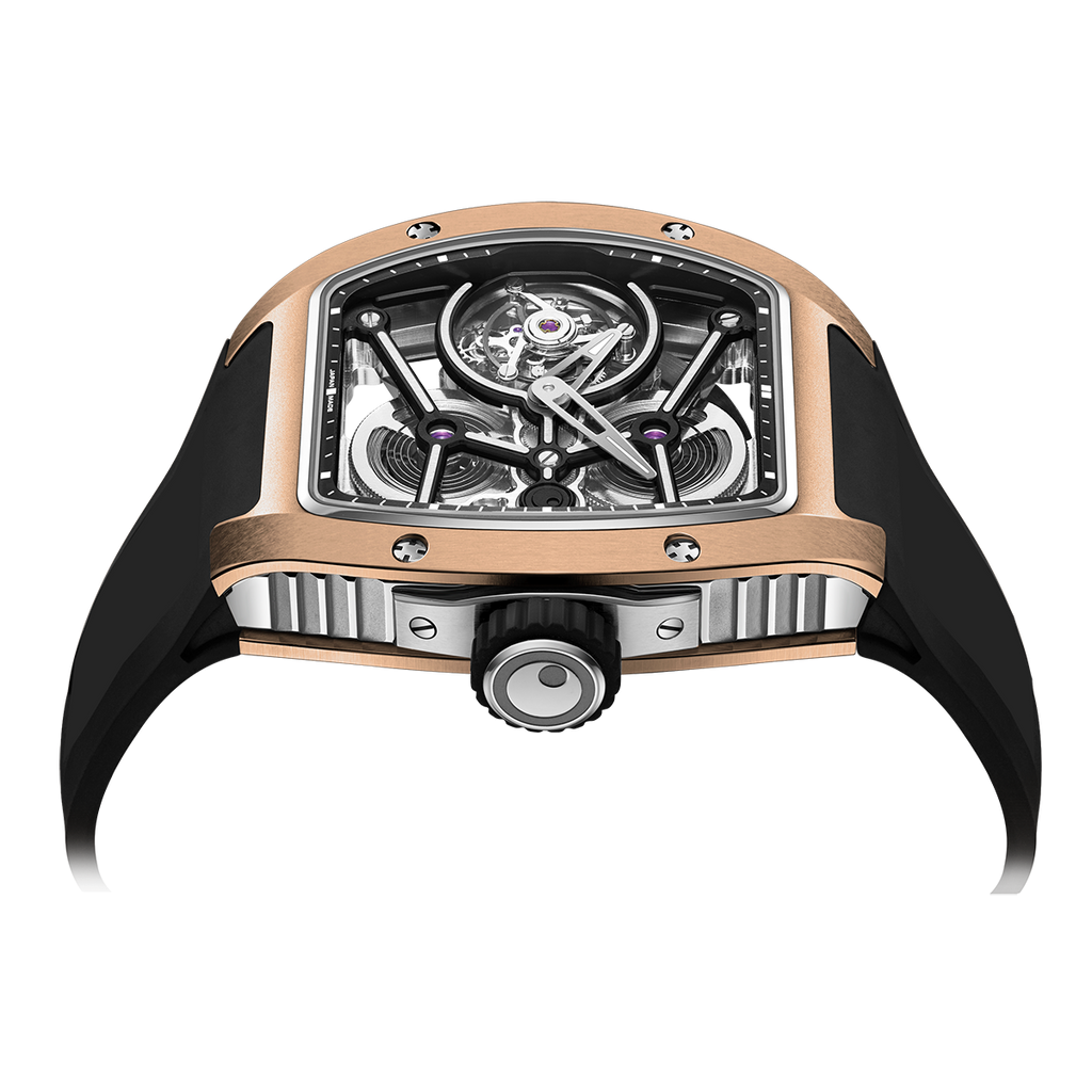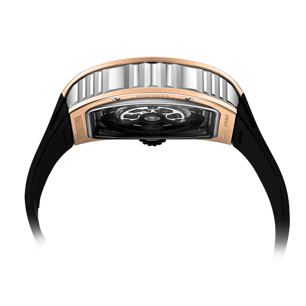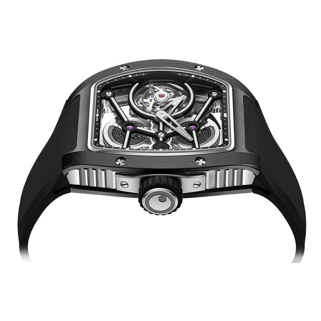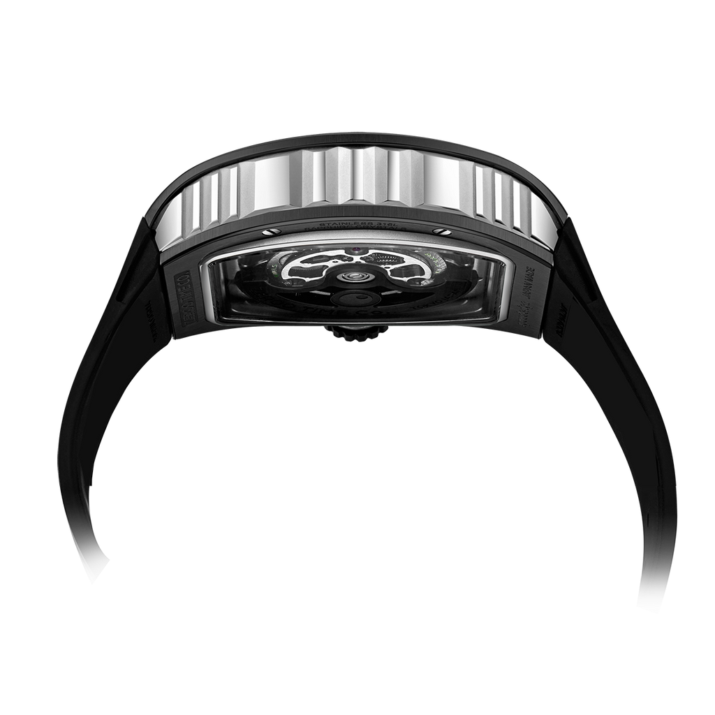 品番:ZT010 ムーブメント:Cal.ZT08 自動巻機械式トゥールビヨン ケースサイズ(W×H):43mm x 51 mm ケース厚さ:14mm ケース素材:316Lステンレススチール ベゼル:ポリッシュ/サテン 風防:サファイアクリスタル 裏蓋:シースルーバック(サファイアクリスタル) 耐水圧:3BAR 重量:136g ベルト素材:フッ素ラバー ベルトカラー:ブラック/ホワイト バックル:Dバックル 夜光:Luminova(針) パワーリザーブ:60時間 保証期間:2年